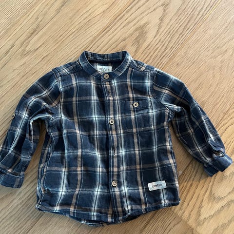 Name it skjorte for gutt i størrelse 122. Skjorten er i blå bomull med rutemønster og lange ermer. Den har knepping foran og brystlomme. Egner seg til hverdagsbruk og enklere penere anledninger.