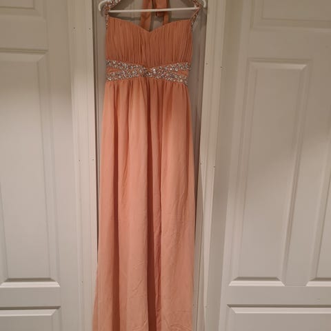 Lang, nydelig paljettkjole. Måler 34 cm over livet, har litt stretch. Måler 130 cm bak, se bilde. Passer s-m
