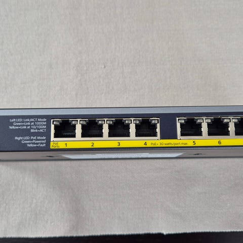 Switchene støtter PoE, som gjør det mulig å levere både data og strøm over nettverkskabel til kompatibelt utstyr, f.eks. kamera, telefon, aksesspunkt. Totalt PoE budget ca 370 watt