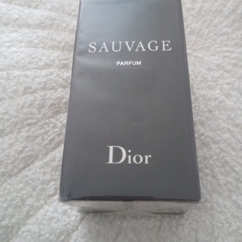 Dior Sauvage Eau de Parfum herreparfyme. Flasken på bildet viser en mørk, gradert glassflaske med sprayfunksjon og original eske. Dufttypen er Eau de Parfum, som vanligvis har høyere konsentrasjon av duftoljer enn Eau de Toilette. Passer som parfyme til menn til daglig bruk eller ved spesielle anledninger.