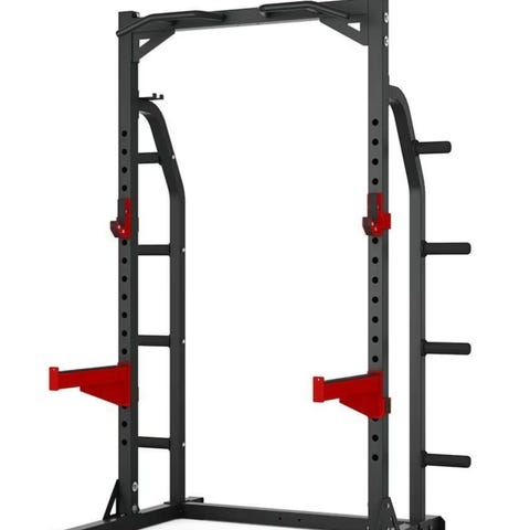 Stativet er egnet for vektstangøvelser som knebøy og benkpress. Det har justerbare høyder for vektstangen, slik at det kan tilpasses ulike øvelser og brukere.