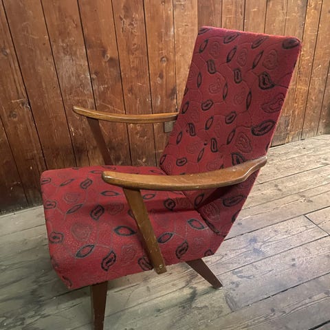 Hvilestol selges, i god stand. Den er tidligere vært trukket om og fremstår pen og i god stand.