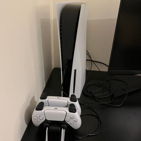 Sony Playstation 5 spillkonsoll i hvit farge. Konsollen leveres med 2 trådløs DualSense-kontroller. Egnet for bruk med kompatible Playstation 5-spill og tilkobling til TV eller skjerm via HDMI. Støtter nettverkstilkobling for nedlasting av spill og oppdateringer, samt bruk av ulike underholdningstjenester som er tilgjengelige for Playstation 5-plattformen.