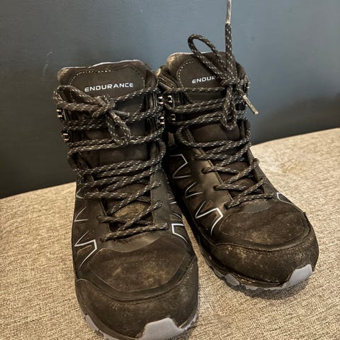 Tursko i størrelse 37 egnet for fottur. Skoene er i burgunder/rød farge med kontrastdetaljer og hurtigsnøring foran. Overdelen ser ut til å være i syntetisk materiale med tekstilpartier, og innersiden har polstret kant for bedre komfort. Yttersålen har markert mønster som gir grep på underlag typisk for tur og lett friluftsliv. Passer til bruk på turstier og hverdagsbruk der det er behov for stabile og lukkede sko.