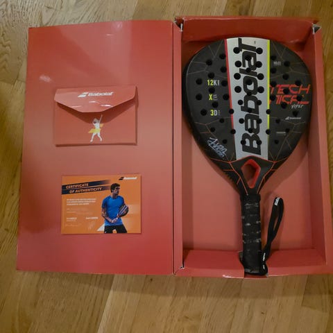 Jeg selger en veldig god padelracket med noen synlige lakk-skader (se bilder). Racketen har ingen sprekker eller skader som påvirker spillet. Har festet to bullpadel custom weight’s på racketen for å flytte tyngdepunktet litt lengre opp.