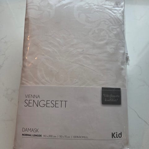 Helt nytt, uåpnet Vienna Damask sengetøy til dobbeltdyne 200 x 220 med dobbelt putetrekk 50 x 70.