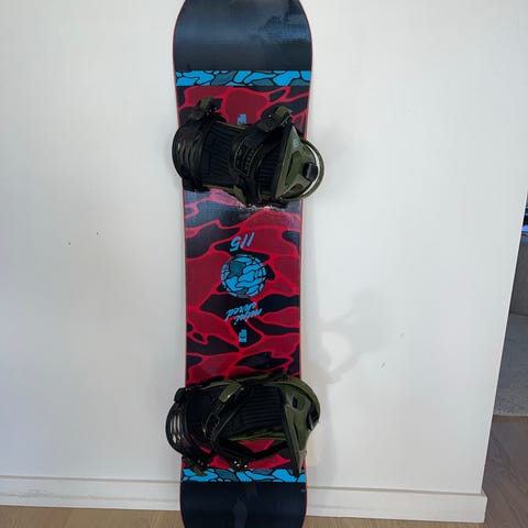 Rome Vinyl snowboard med Burton step-in bindinger.