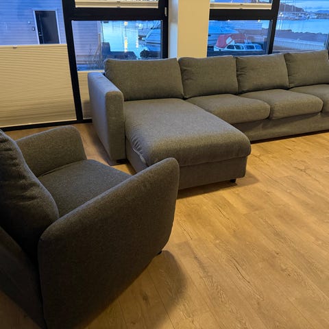 IKEA Vimle sofa med to sjeselong og toseter. Brede armlen. Djuparp blå.