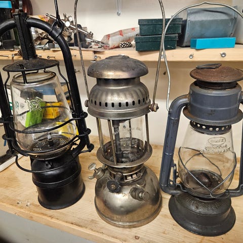 Petromax lamper i kasse. Står bare og støver, ikke brukt av meg.