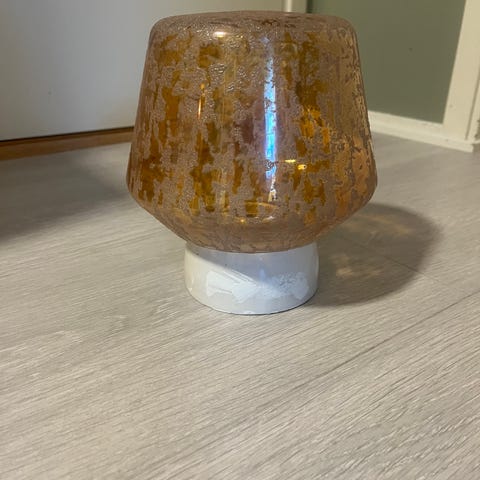Selve glasskuppelen er i fin stand. Noe skår i skru kant, men det viser ikke når lampe henger i tak.