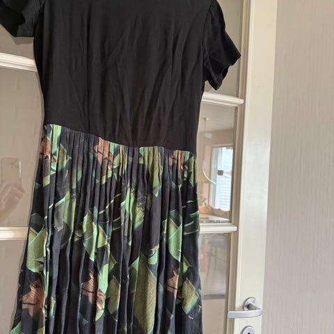 Indiska flerfarvet på sort bunn kjole str S