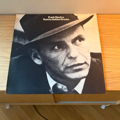 Frank Sinatra «Sinatra Plus» vinylplate LP. Albumet består av to LP-plater med originalt plateomslag. Utgivelse på etiketten Fontana. Baksiden av coveret viser låtliste med flere innspillinger av Frank Sinatra. Passer for samlere av klassisk vokaljazz og swing på vinyl.