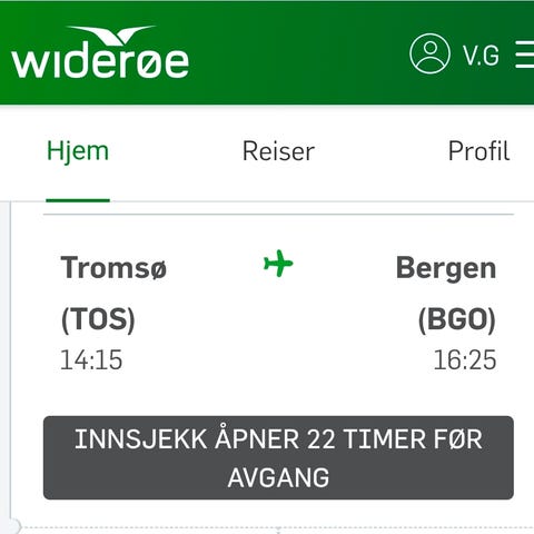 Direktefly fra tromsø til bergen, mandag 16 febr. Kl 17.15