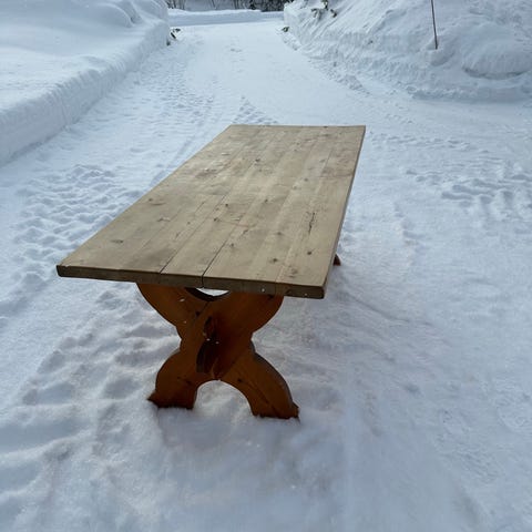 Selger min fine benk fra Krogenæs Møbler pga flytting. Kjøpt på Antikkvarehuset på Grünerløkka for 2700kr for tre år siden. Benken er godt brukt, med kun et par estetiske bruksmerker (se bilde). Benken er ellers solid og komfortabel i bruk.