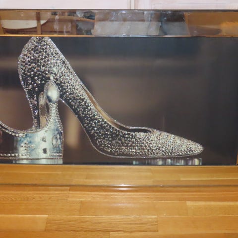 Samling med dekorative veggbilder og et speil. Speilet har rundt midtparti med mindre runde speilelementer rundt. Ett av bildene viser et kveldsbilde av en uteservering i smal, høy ramme med gullfarget kant. Et annet motiv viser en storby-scene med reklameskilt og lys, fordelt på to vertikale paneler. I tillegg følger tre kvadratiske bilder med abstrakte motiver i grønne og beige toner, alle med ramme. Egnet som veggdekor i stue, gang eller andre oppholdsrom. Er også en sølv puff med oppbevaring i.