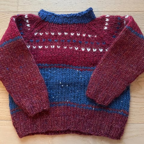 Ny strikket genser, islandsk ull, veldig varm, str.3-4 år.