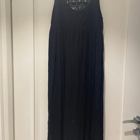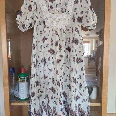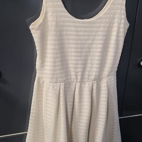 LINDEX hvit mønstret kjole med heklet bærestykke str S