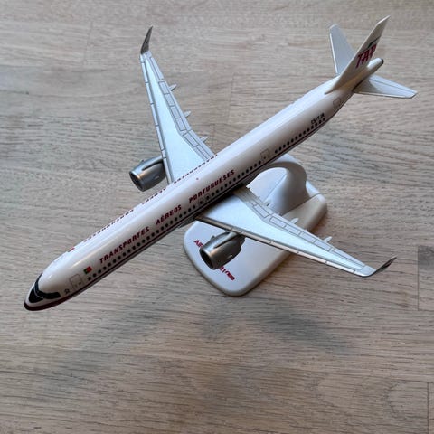 3D-printet i 6 deler i gråblå «Airbus-farge», og deretter er limt og plastsveiset sammen.