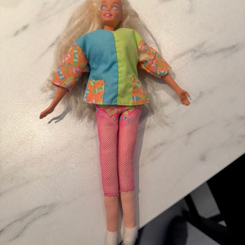Mattel Barbie dukke med langt, lyst hår og blå øyne. Den er fra 1966