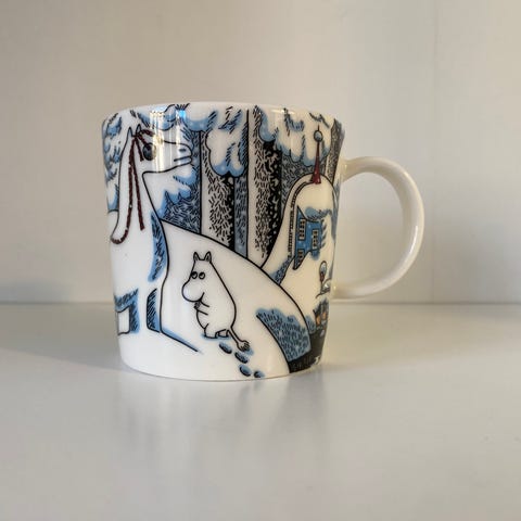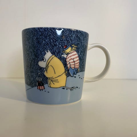 Mummikopp mumi mumin moomin arabia finland finsk design samleobjekt vintage retro interiør kjøkken mummitrollet lille my snusmumrikken sesongkopp mummimamma mummipappa sniff stinky hestene filifjonka totteki tufsla mummishoppen krus kopp kaffekopp samling Limited edition utgått mummidalen tove jansson Vinterkopp