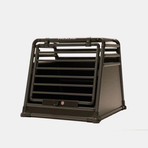 Selger et nytt hundebur fra Packline, modell DogCage 20. Buret er kun prøvd én gang, men ble dessverre for lite til vår hund. Det er laget i solid aluminium, har god ventilasjon og topphengslet dør med sikker lås. Buret har målene 750 x 550 x 500 mm og leveres med en tilpasset sklisikker matte som passer inni buret.