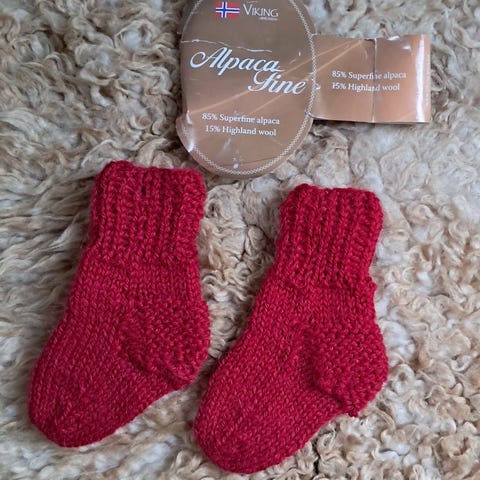 Helt nye hjemmestrikket sokker i ca str 80, se bild nr 2 før mål.