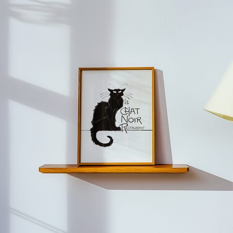 Plakat med grafisk motiv av en svart katt i profil med gult halsbånd på lys bakgrunn. Leveres innrammet i enkel, smal ramme. Passer som veggdekor i stue, gang, soverom eller kjøkken. Plakaten er 60 /90 cm stor og egner seg til å henge alene eller sammen med andre bilder i en bildevegg.