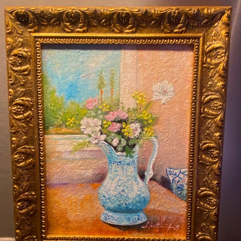Bistår min mor med å selge noen bilder. Cobramaling på oval treplate 21,5x13,8. Håndmalt av Marit Storrusten.