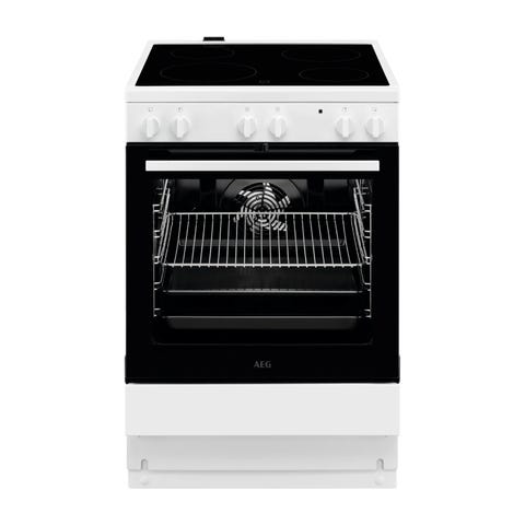 Electrolux induksjonskomfyr i hvit utførelse. Komfyren har induksjonstopp med flere kokesoner og stekeovn med glassdør og rist. Fronten har betjeningsknapper og håndtak i metall. Nederst er det en oppbevaringsskuff for stekebrett og tilbehør. Passer til frittstående plassering på kjøkkenet der det er behov for komfyr med induksjonstopp og integrert stekeovn.
