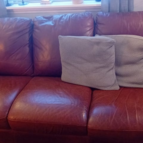 Grei svart skinnsofa 2+3. Synlig brukt men brukendes for noen som trenger en billig salong. Kjøpt på Skeidar