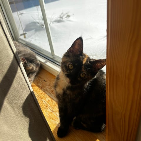 Leken, trygg og nysgjerrig kattunge søker nytt hjem. Mor er 50% Main Coon og far er bondekatt. Hun er leveringsklare 28 februar. Hun er vokst opp med andre katter og er renslig
