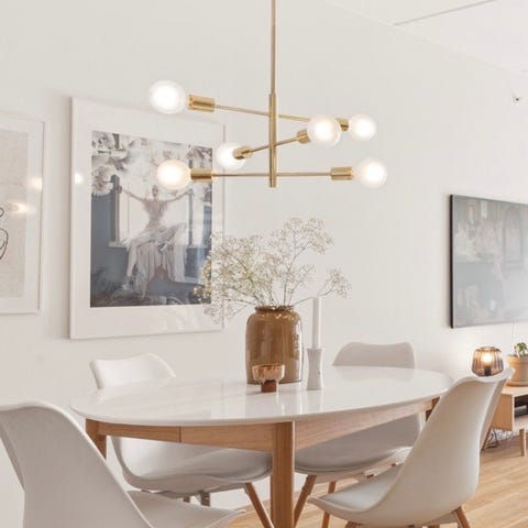 En av glasskulene har fått knust av en liten bit, men ellers er lampen helt fin.