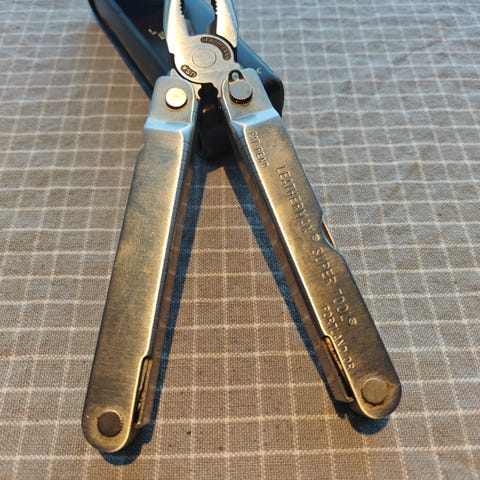 Så og si ubrukt leatherman Surge selges. (OBS, SAGBLAD ER BORTE) Dette kan erstattes med et standard sagblad fra jernvaren eller bestilles på nett.