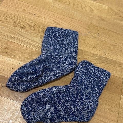 Hjemme strikket ullsokker. Strikket med garn 80 % ull og 20% nylon( som forsterker sokkene)