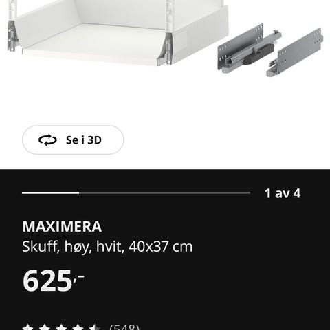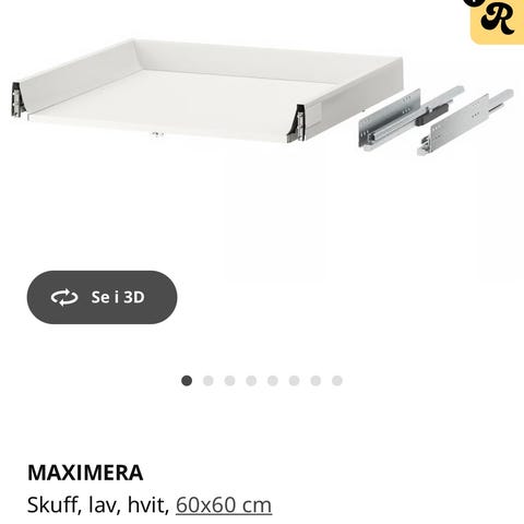 Har to stykk med skuffefronter og skinner. Frontene kan tas av hvis man ønsker å sette kjøkkenfrontene rett på.