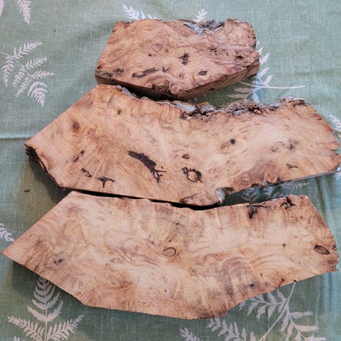 Selger flere fine knivemner i risknute bjørk med spennende og levende tegninger i treverket. Hvert emne har sitt eget særpreg, med naturlige mønstre og fargespill som gir personlige og eksklusive knivskaft.