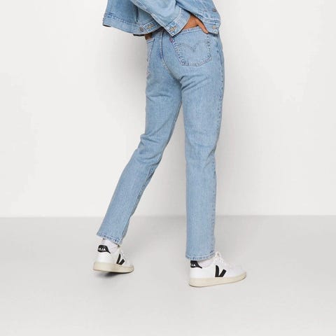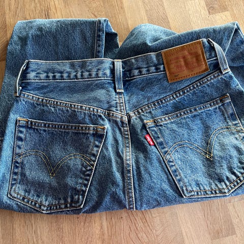 Levi's 501 jeans for dame i blå denim. Buksen er i størrelse M med livvidde W32. Klassisk 5-lommers modell med knappgylf og beltehemper. Materiale i slitesterk denim som gir et tidløst uttrykk og passer til hverdagsbruk.