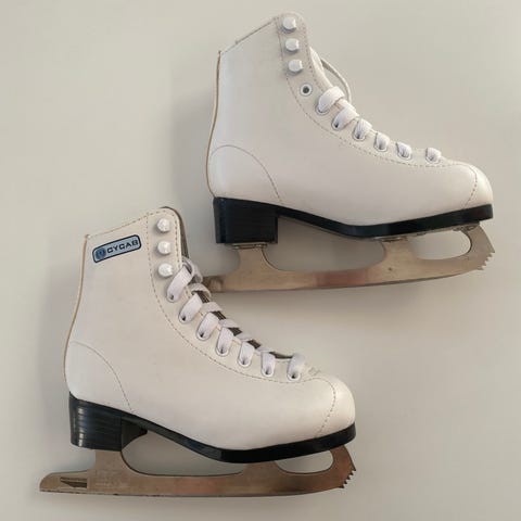 Cycab kunstløpskøyter for barn i størrelse 34. Klassisk hvit modell med høyt skaft og snøring for god støtte rundt ankel. Skøytene har kunstløpsklinge med tagger foran. Overdel i syntetisk materiale og såle med hæl. Egner seg til bruk på isbaner og skøytebaner for barn som ønsker stabile kunstløpskøyter i denne størrelsen.