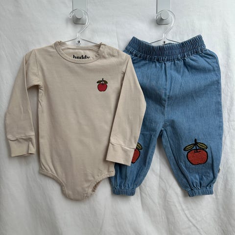 2 stk nye bodyer fra Buddy & Hope. Kun vasket én gang. Str 74/80. Selges for 100kr.