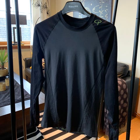 Pierre Robert langermet trøye for herre i størrelse L. Trøyen er blå og laget i et materiale med 91 % polyester og 7 % elastan. Den har ettersittende passform med elastisk kant nederst og meshfelt i ryggen for bedre ventilasjon. Egner seg godt som innerste lag eller treningsoverdel til ulike aktiviteter.