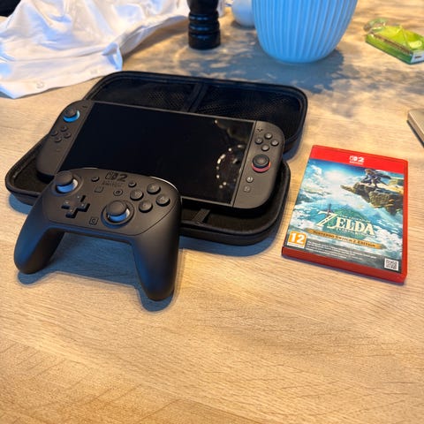 Switch 2 + Nintendo konto, med to kontrollpar. Spill på konto: Donkey Kong Bonanza, Cyberpunk, Metroid Beyond, Mario Kart World, Animal Horizon, Civilization 5, pluss mange andre switch spill. Konto må overføres. Nintendo switch 2 veske kommer også med. Selger eventuelt bare Switch 2 med kontroller og veske uten konto for 5500.
