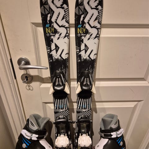 K2 alpinski 136 cm, Salomon skistøvler 25.5 og staver 115 cm.