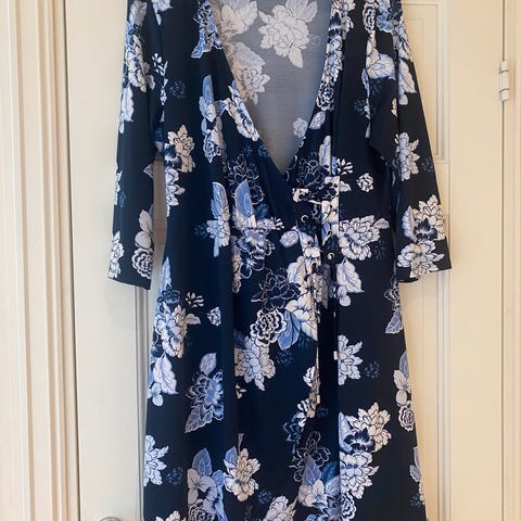 Flott kjole i sort m/ blomsterdekor, str.US8,tilsvarer 36/38 .