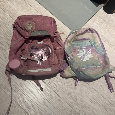 Pent brukt rosa skolesekk og gymsekk fra Beckmann