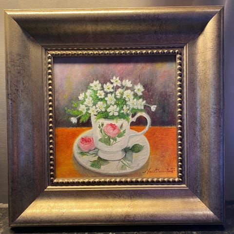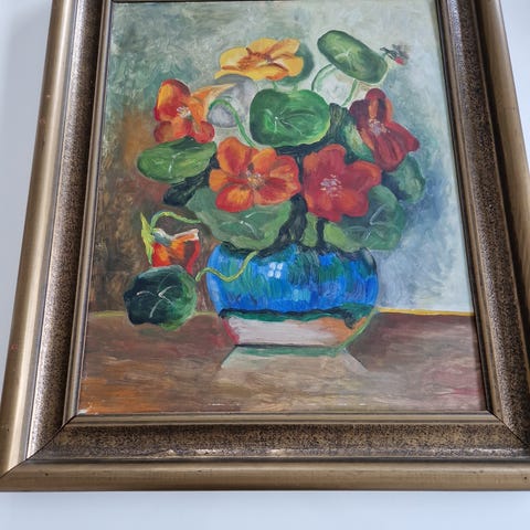 Maleri, «Sommerblomster i blå mugge»