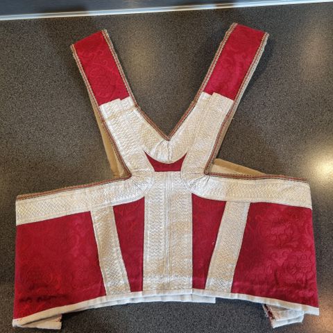 Flott rød ull opplut til Åmeli Bunad. Sølvbåndene er veldig fine, og er ikke oksidert.