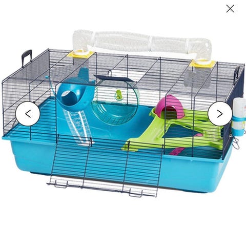 Hamsterburet består av tre nivåer og inneholder blant annet et koselig hus, stige og et tunnelsystem. Dette er tilbehør som hjelper til at kjæledyret ditt skal trives og ha det gøy.
