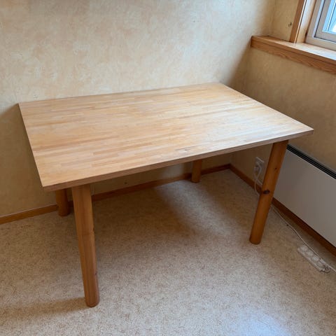 Ikea skrivebord med glassplate gis bort mot rask henting. Bærer noe preg av oppussing oppå glassplate.