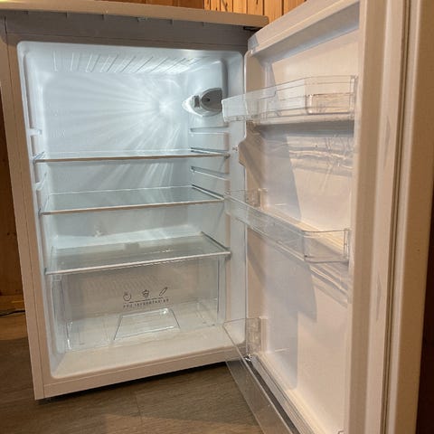 På utsiden finner du et LED-display som viser aktuell temperatur, og innvendig er det belysning. Den høyrehengte døren er laget av glass og har håndtak i rustfritt stål.