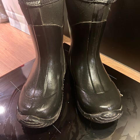 1 par sorte waterproof allværsstøvler. Hele og fine men brukt og har noen merker. Mye støvler igjen.Fine nå til våren da de er tykkere og har litt mykere tykkere "for" inni.